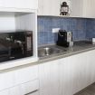 Au premier étage, il y a accès à la grande terrasse. Il peut accueillir confortablement jusqu'à 8 adultes et deux enfants. Trois salles de bains, cuisine avec table avec accès jardin et coin salon, grill, dîner avec vue. Partie d'une grande Villa. Parfait pour grandes familles